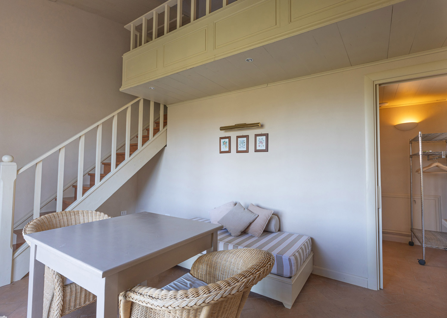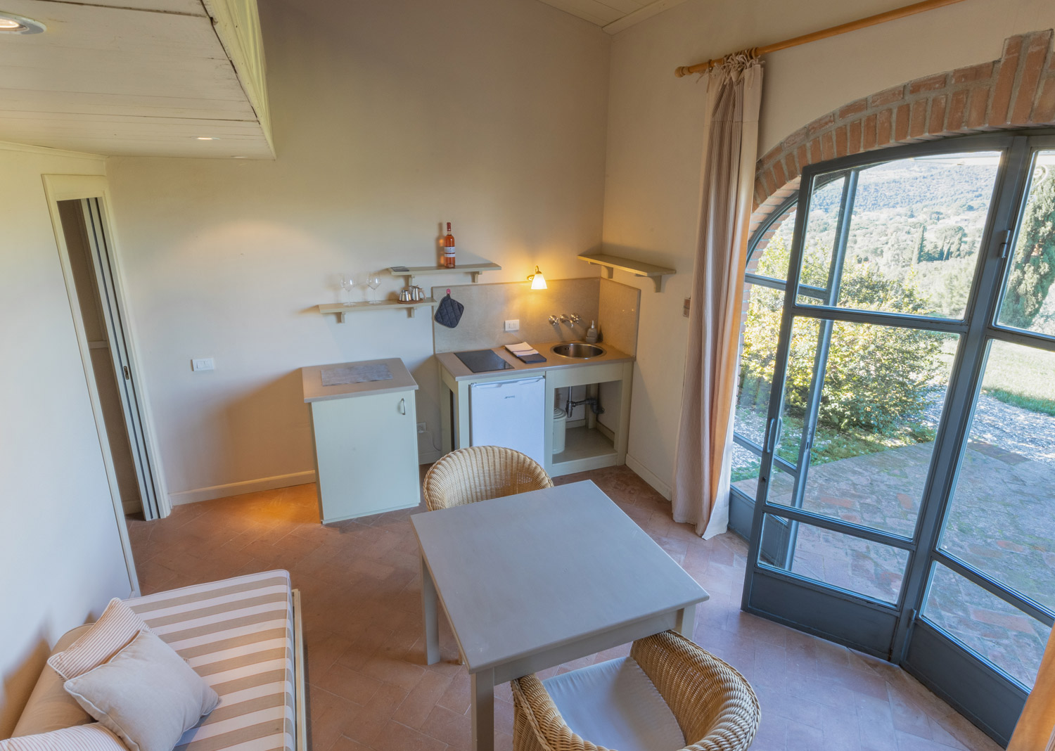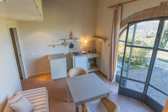 “Olivi” sono tra le residenze più intime e compatte, situate all’interno di quello che un tempo era il fienile dell’edificio. Ogni appartamento dispone di una luminosa zona soggiorno, arricchita da un comodo divano letto per l’ospite aggiuntivo, e di un angolo cottura completamente attrezzato. Il letto matrimoniale è posizionato sul soppalco, conferendo un’atmosfera accogliente e originale. La stanza da bagno, dal design unico e dalle dimensioni particolari, è arricchita da una doccia inimitabile. All’esterno, una spaziosa area pergolata, arredata con cura, offre una vista mozzafiato sul panorama circostante.